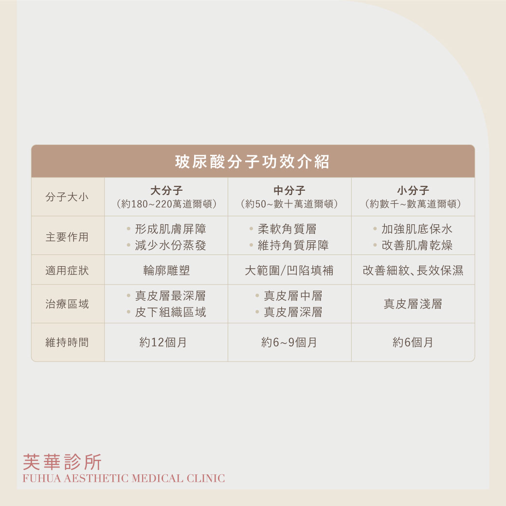 根據不同的分子大小,玻尿酸可以有效改善不同層次的肌膚問題: