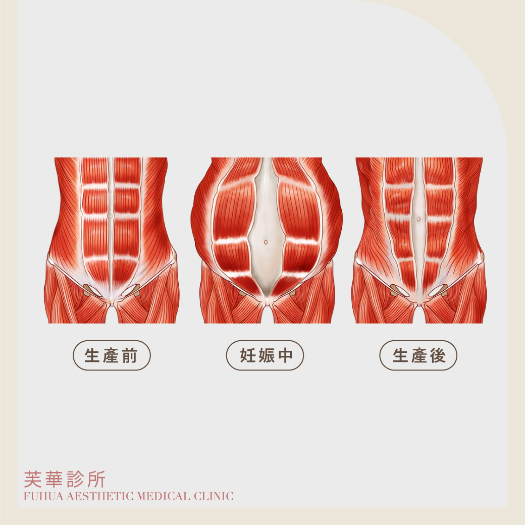 在一般情況下,人體雙側腹直肌的距離應小於2公分,但是在妊娠中的媽媽們,會因為胎兒成長,導致子宮擴大、腹部器官改變位置,當腹肌需要承受的壓力增加,雙側腹直肌之間的距離就會加大,從而產生腹直肌分離的狀況。