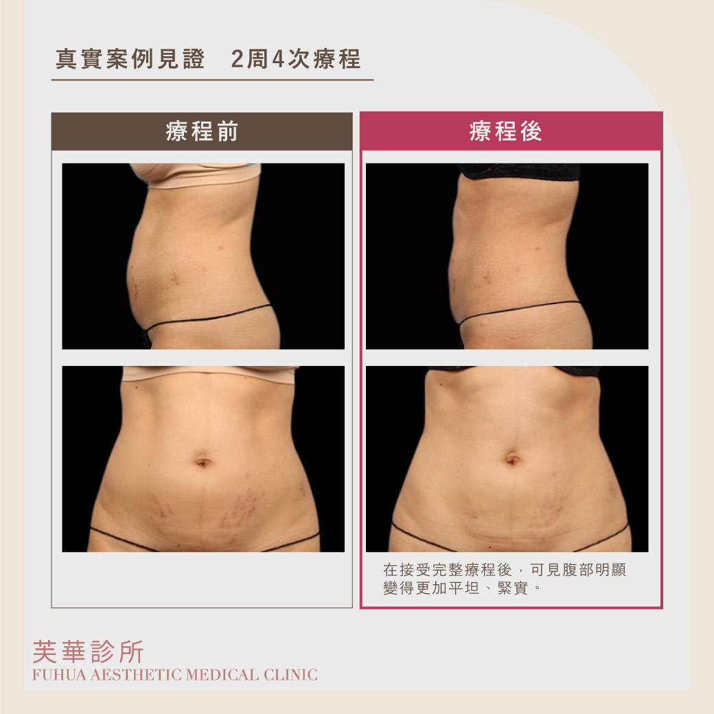 建議療程為1週2次,共4次療程,每次30分鐘。在接受前兩次療程後的30分鐘,會感受到作用部位變得更加緊實;而在接受完整4次療程後,約2~6週可達到最佳效果。