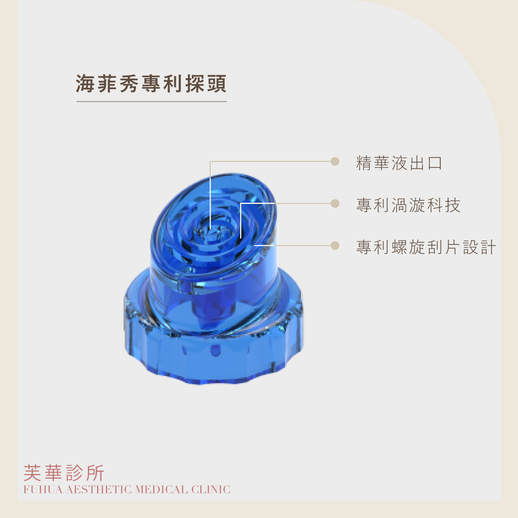 渦漩注入技術Vortex Technology®是海菲秀的獨家專利技術,海菲秀使用一系列特殊的Hydropeel端頭,每一種端頭都有特殊功能,如去角質、吸取與潤澤肌膚。