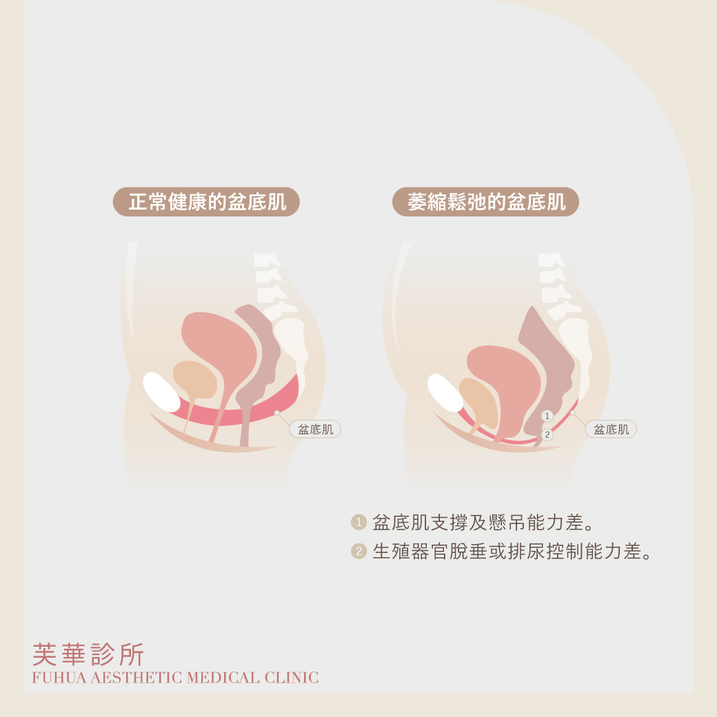 盆底肌鬆弛可能會導致尿失禁、頻尿、夜尿…等生殖泌尿系統的問題,進而演變成慢性盆腔痛、陰道膨出、子宮臟器脫垂,嚴重時更會影響親密關係。