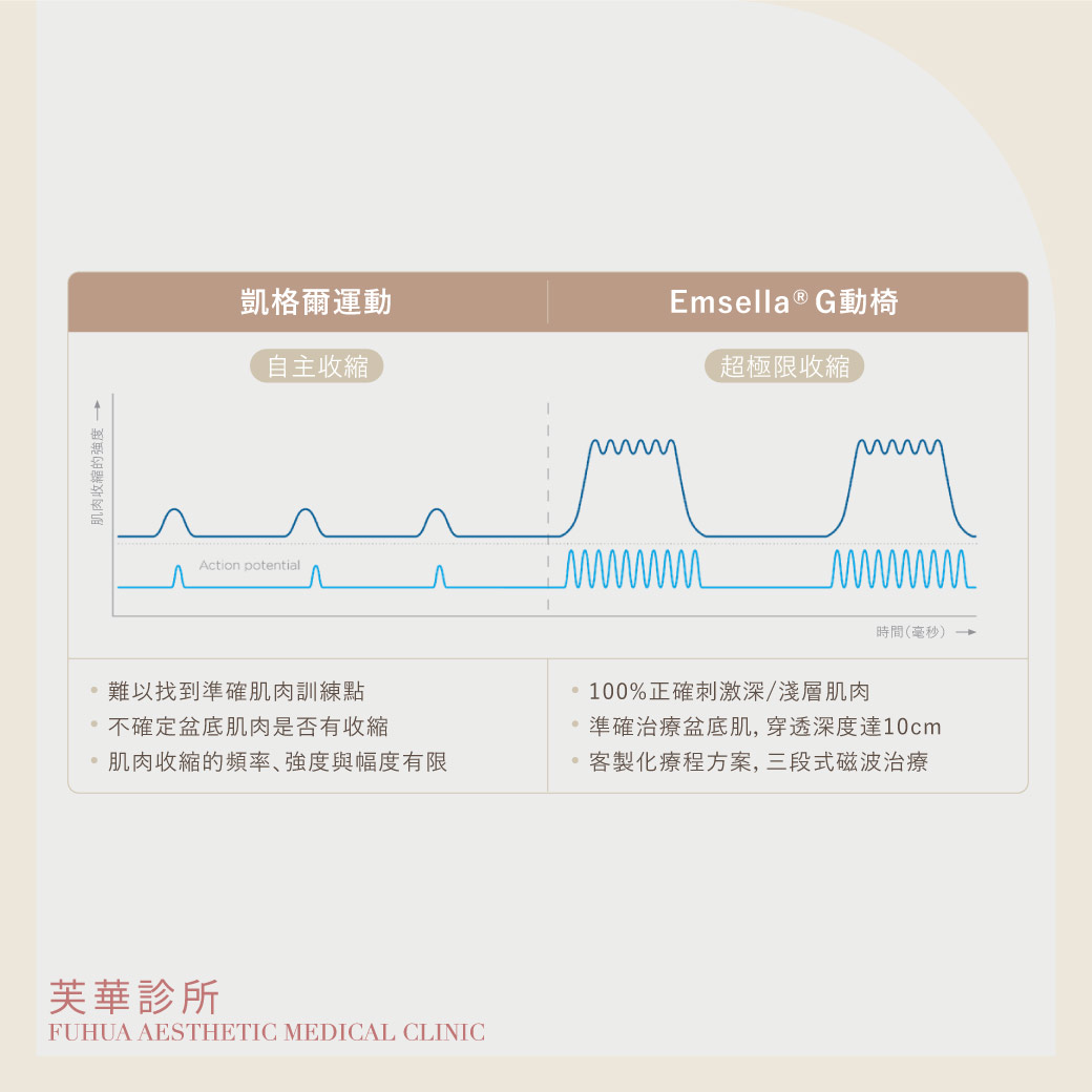 專利HIFEM®(High-Intensity Focused Electromagnetic)高強度聚焦磁能技術,通過高頻收縮信號,可針對骨盆底的深層肌肉進行訓練,有效於28分鐘內,誘發肌肉收縮達10,000多次,使肌肉完成在自主運動下無法達到的「超極限收縮(Supramaximal Contractions)」。