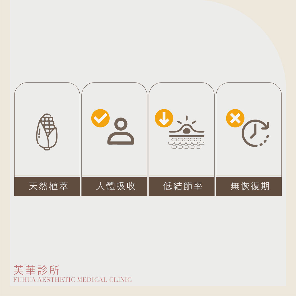 艾麗斯AestheFill ®的成分屬於新型態聚雙旋乳酸(PDLLA),稀釋容易、不易結晶,大幅降低結節機率,有效恢復肌膚自然柔軟與細緻Q彈!