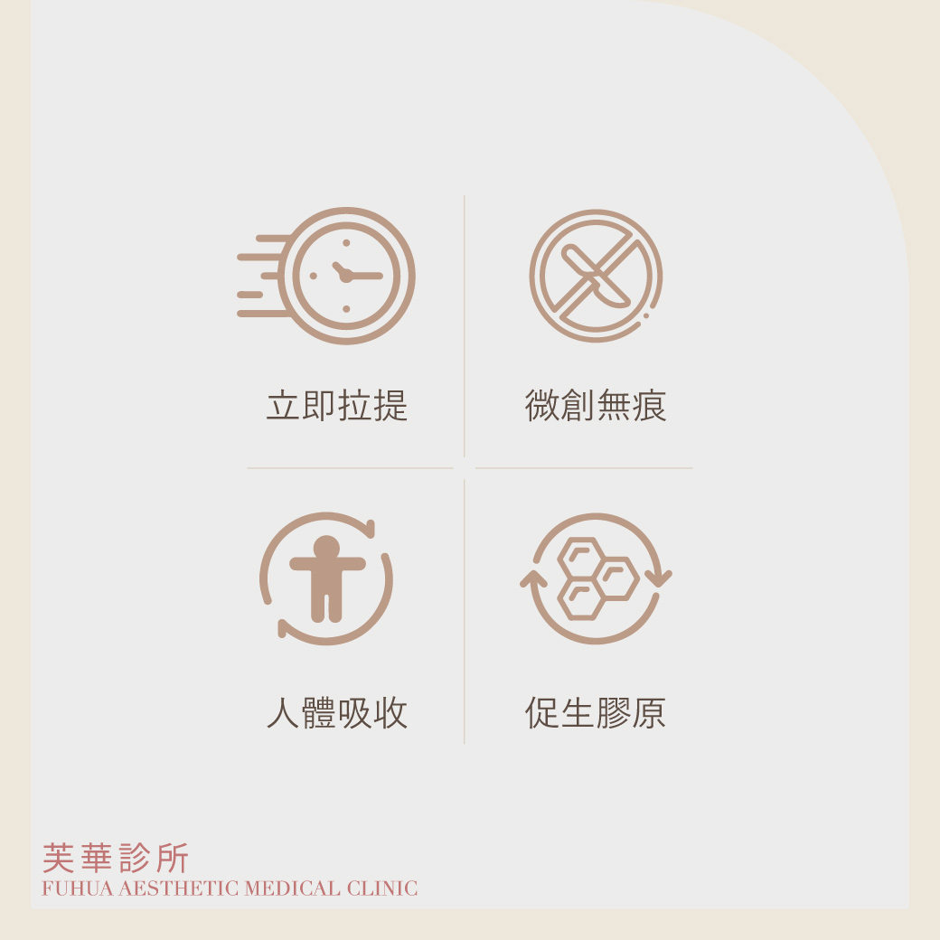 埋線拉提是您對抗地心引力的新式選擇,它具有比電音波更深層的拉提作用,同時也能促進膠原蛋白增生,